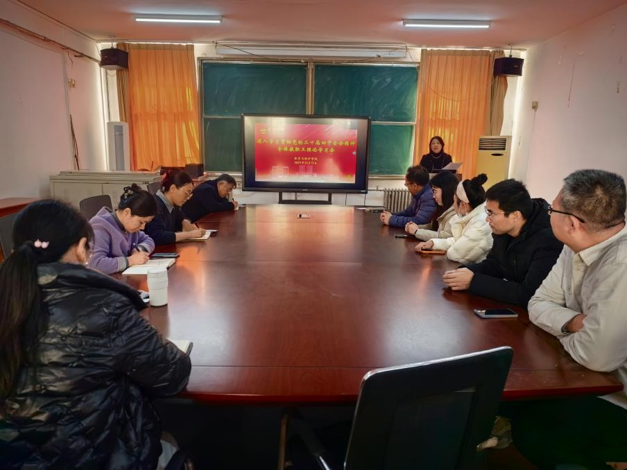 会上,通过播放新闻联播视频的方式,全体教职工集体学习了中国共产党第二十届中央委员会第四次全体会议公报。
