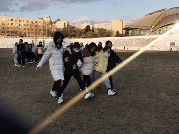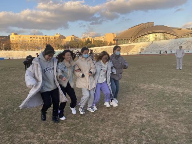 四根绳,五个人,简简单单绑在一起,跌跌撞撞向前一步。本次活动大家热情高涨,在欢声笑语中各班同学团结进取,奋勇争先。不仅丰富了91制片厂同学的课余文化生活,更增强了班级凝聚力。